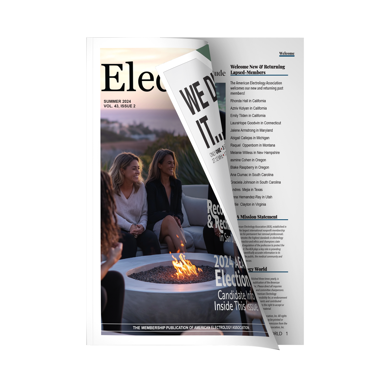 As an active member of the American Electrology Association, you're invited to enjoy Electrology World, a complimentary publication that brings you the latest insights in the world of electrology.